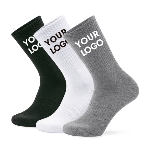 Toptan katı siyah beyaz gri boş erkek kadın pamuk ekip spor çoraplar düşük adedi özel Logo